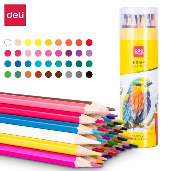 [ Set 5 Hộp ] Bút Chì Màu DELI Tan Trong Nước Có Thể Giặt Sạch [ 12-24-36-48 Màu ] - 19222